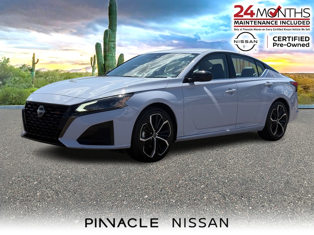 Stand out with sporty style and everyday efficiency in this Certified Pre-Owned 2023 Nissan Altima 2.5 SR. Finished in Gray Sky Pearl and powered by a 2.5L 4-Cylinder DOHC 16V engine with CVT with Xtronic, this Altima delivers a smooth ride and impressive fuel economy at 27/37 City/Highway MPG. With a CARFAX One-Owner, Clean CARFAX, this sedan is a reliable choice for Arizona drivers.
